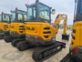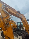 Der Bagger verfügt über eine komfortable Kabine mit ergonomischen Bedienelementen, guter Sicht und optionalen Ausstattungen wie Klimaanlage, Multimedia-System und Schnellwechsel-Hydraulikanschlüsse für Anbaugeräte, was die Vielseitigkeit im täglichen Einsatz weiter erhöht