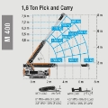 De Sankoo Bg Lift M400 een unieke Pick and Carry minihijskraan. Een compact kraan waarvan de kracht-gewicht ratio nog nooit is gezien. De dwarsbalken zorgen voor een geavanceerde stabilisatie. Deze compacte kraan is uitgerust met de meest innovatie technologieën.