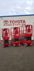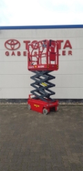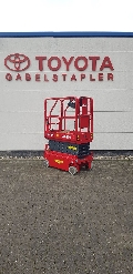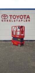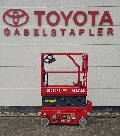 Endkundenbemerkung: Arbeitshöhe 5,60m, Plattformhöhe 3,60m, Höhe der Arbeitsbühne 2,03m, Höhe bei heruntergeklapptem Geländer 1,67m, Länge der Arbeitsbühne 1,44m, Plattformlänge 1,29m, Plattformlänge ausgeschoben 1,89m, Breite der Plattform 0,70 m, Fahrgeschwindigkeit (eingefahren) 4,0 km/h