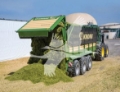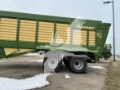 Description: Up to 73.2 yd³ (DIN 11741) capacity - Single-frame concept for a lower dead weight and higher payload - Sloping steel floor for added capacity and smoother ride - Hydraulic articulated drawbar: Front end lowered toward the tractor to open fields - Extremely powerful roller chain drive for the chain-and-slat floor - Hydraulic pressure compensation on the axles for maximum ride stability Hydraulic or electronic forced steering as an option for more agility
