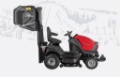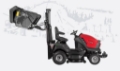 Vysokozdvižné vyklápění zásobníku trávy na zem či do kontejneru.