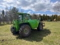 Joystick control, side shift, hitch, boom suspension and etc. Could go up to 43 km/h.