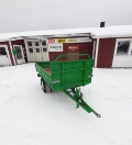 Tippvagn med hydraulisk tipp bakåt. Öppningsbara sidolämmar, höger, vänster sidor samt bak. Lämmar 300mm. Total längd med drag ca 3600mm. Flak 2500x1250mm. Trafikbelysning. Ögledrag.