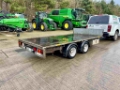 14ft Flatbed Trailer c/w headboard, spare wheel, bulb lights & prop stands.