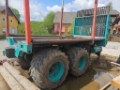 Load capacity 18t, width 2.3m, empty weight 5,5t, LED worklights, air brakes on all 4 wheels, 1. axle parking airbrake, hydraulic traction motors on 1. axle with breaking function up to 14kmh, hydraulic lifted 1. axle, intergrated hydraulic pump, K80 hitch, undercarriage swing +-4°/+-8° left and right, hitch hydraulic lift, front plank hydraulic lift, tyres Nokian Forest King F2 600-50 R22.5 20PR. Chains included and 2 brand new tyres.