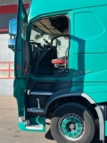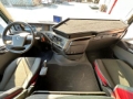 FH Globetrotter-Fahrerhaus (High Sleeper Cab), Kabinenfederung vorne mechanisch, hinten luftgefedert, Dachspoiler elektrische Dachluke (getöntes Glas), getönte Scheiben, Vorhänge an Windschutzscheibe und Fenstern, Klimaanlage mit automatischer Temperaturregelung und Sonnensensor, I-Park Cool (Standklimaanlage mit automatischer Temperaturregelung), Dynafleet-Abonnements (Kraftstoffsparassistent Driver Times, Positioning), Anhängererkennung mit LED-Sensor, Standheizung Fahrerhaus (2 kW), Kühlschrank (33 l) mit Gefrierfach, Taschenfederkern-Matratze (mittelhart), Stauraum unter der Liege, Staufächer über der Liege (245 l), Schaltkonsole (Luxus) an Liege, Schreibbrett fürs Lenkrad, Fahrersitz Komfort, luftgefedert, beheizt, mit Gurt im Sitz, Beifahrersitz Standard, luftgefeder, Sitzbezüge Textil mit Vinyl (schwarz/rot oder blau), zwei Armlehnen am Fahrersitz.