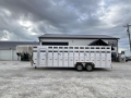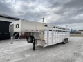 Description: 2026 Duralite Trail Drive Livestock Trailer that is 25' long x 90" wide x 80" high. This trailer features 2-7k axles, 14 ply tires on steel wheels ( the spare is the same), 2 front wall vents, a standard jack, Bulldog coupler, a deluxe light package, rear load lights, front nose extra light option, 2 interior lights, 28" driver's side escape door, sheeted neck gate, 3 equal compartments, slatted front center gate, back center gate with slider, front and back center gates both have C5 slam latches, sheeted slider tailgate, standard tailgate vents, slam latch on tailgate, skid plate, support rail, step rail, and full winter kit tracking. Standard pricing on this trailer is $34,900. We have this discounted through November! Take advantage now! This trailer is sold, but we are leaving this listing up to display options. Give our sales team a call. This is an extremely versatile trailer...you'll like it!