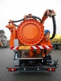 Behältervolumen insgesamt 9 m³; Verschlussboden über den gesamten Querschnitt des Behälters mit 2 Hydraulikzylindern nach oben zu öffnen; Deckelverriegelung mit Spannpratzen Hammerkopfschrauben und Gestänge in verzinkter Ausführung (Option hhydraulische Knaggenverriegelung); zentral betätigt über einen Pneumatikzylinder; das Öffnen der Verriegelung ist nur bei Vakuum möglich; Füllstandsanzeige: mit 2 innenliegenden Schwimmern und äußerer Skala; für die Schlammkammer ausgelitert in 1000 l