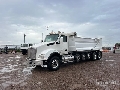 Paccar MX-13 12.9 L Diesel 485 hp Engine, 2018 US EPA Label, Requires Diesel Exhaust Fluid, 14030 Engine hrs, Engine Brake, Eaton Fuller FO-16E308LL-VCS 8LL Automated Transmission, 20000 lb Front Axle, 44000 lb Rears, Meritor MP44-14X5 Drive Axles, 3.90:1 Axle Ratio, 70000 lb GVWR, Air Ride Cab, Aluminum Outer Wheels, 315/80R22.5 Front Tires, 11R22.5 Rear Tires, 3 Steerable Air Lift Pusher Axle, Dual Steering Boxes, Chalmers Suspension, 270 in Wheelbase, Beau Roc 19 ft Long x 4 ft 6 in High Steel Body, Round Bottom, Electric Roll Tarp, High-Lift Tailgate