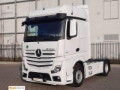 Getriebe 12-Gang Automatik, Elektronisches Bremssystem (EBS) mit ABS und ASR, Scheibenbremse an VA und HA, Feststellbremse, elektronisch, Sekundär-Öl-Retarder, Radstand 3.700 mm, Seitenverkleidung aerodynamisch, Fahrer-Schwingsitz, Komfort, Komfortbett oben, breit, nivellierbar, Komfortbett unten, Matratze unten, PremiumComfort, Rasierspiegel, Sonnenrollo elektrisch, 1-teilig, LED Ambientebeleuchtung, fahren und wohnen, Standklimaanlage, elektrisch, Klimaautomatik, Restwärmenutzung, Warmwasser-Zusatzheizung, Fahrerhaus, Geräusch- und Wärmeisolierung, Fahrerhaus, Schiebe/Hebedach elektrisch, Glasausführung, Sitzkasten, 40 mm abgesenkt, Anhängersteckdose 24 V, 15-polig, Mercedes Stern, beleuchtet, BigSpace Fahrerhaus, 2,50 m breit, ebener Boden, Luftleitkörper, rastbar, mit Endkantenklappen, Sonnenblende außen, transparent, Drucklufthorn, Schließanlage, mit Zentralverriegelung, Komfortschließanlage, Lichtsensor, Regensensor, Predictive Powertrain Control (PPC), Mercedes PowerShift 3, Powershift Advanced, Reifen 315/70 R 22,5 HA, Reifen 385/55 R 22,5 VA/VLA/NLA, Luftfederung, Hinterachse, Sound-System, Navigationssystem, Tank 570 Liter, AdBlue-Tank 95 Liter, Tank 430 Lliter, Automatisches Auf-/Abblend- und Abbiegelicht, LED-Blinker in Lichtsignatur, 1 LED Arbeitsscheinwerfer unten, mittig, Motor OM 471, R6, 12,8 l, 375 kW (510 PS), 2500 Nm, Motorausführung Euro 6, E, 3. Generation Motor OM471, High Performance Engine Brake, TruckLive, Safety Pack, Climate Package bei Geräusch-/Wärmeisolierung, Actros L, Chrom Paket, Interieur, Media Package, Stowage Package, Economy Package, Driving Package, Comfort Package, Stabilitätsregel-Assistent (ESP), Spurhalte-Assistent, Abstandshalte-Assistent, Aufmerksamkeits-Assistent, Verkehrszeichen-Assistent, Active Brake Assist 5, Active Sideguard Assist, Reifendruckkontrolle, Airbag, Fahrer, Tempomat, Actros Modellgeneration 5, MB ATS-Gewährleistung gem. AGB ab Erstzulassung 3 Jahre/450000 km, Kühlschrank in Schublade unter Bett, EBS, Ohne Ersatzrad