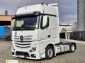 Getriebe 12-Gang Automatik, Vorderachse luftgefedert, Vorderachse 8,0 t, Elektronisches Bremssystem (EBS) mit ABS und ASR, Scheibenbremse an VA und HA, Feststellbremse, elektronisch, Sekundär-Öl-Retarder, Radstand 3.700 mm, Fahrer-Schwingsitz, Komfort, Komfortbett oben, breit, nivellierbar, Komfortbett unten, Matratze unten, PremiumComfort, Rasierspiegel, Sonnenrollo elektrisch, 1-teilig, LED Ambientebeleuchtung, fahren und wohnen, Standklimaanlage, elektrisch, Klimaautomatik, Restwärmenutzung, Warmwasser-Zusatzheizung, Fahrerhaus, Wärmeisolierung Fahrerhaus zusätzlich, Schiebe/Hebedach elektrisch, Glasausführung, Anhängersteckdose 24 V, 15-polig, Mercedes Stern, beleuchtet, GigaSpace Fahrerhaus, 2,50 m breit, ebener Boden, Fahrerhauslagerung Komfort, luftgefedert, Luftleitkörper, starr, mit Endkantenklappen, Sonnenblende außen, transparent, Drucklufthörner, Fahrerhausdach, Schließanlage, mit Zentralverriegelung, Komfortschließanlage, Lichtsensor, Regensensor, Predictive Powertrain Control (PPC), Mercedes PowerShift 3, Reifen 295/55 R 22,5 HA, Reifen 355/50 R 22,5 VA/VLA/NLA, Luftfederung, Hinterachse Lowliner, Sound-System, Navigationssystem, Tank 660 Liter + 75 Liter AdBlue, Tank 290 Liter, Automatisches Auf-/Abblend- und Abbiegelicht, Scheinwerfer-Reinigungsanlage, Motor OM 471, R6, 12,8 l, 375 kW (510 PS), 2500 Nm, Motorausführung Euro 6, E, High Performance Engine Brake, Safety Pack, Chrom Paket, Interieur, Climate Package, Media Package, Economy Package, Comfort Package, Sight Package, Stabilitätsregel-Assistent (ESP), Spurhalte-Assistent, Abstandshalte-Assistent, Aufmerksamkeits-Assistent, Verkehrszeichen-Assistent, Active Brake Assist 5, Active Sideguard Assist, Reifendruckkontrolle, Airbag, Fahrer, Tempomat, Actros Modellgeneration 5, Kühlschrank in Schublade unter Bett, EBS, Ohne Ersatzrad
