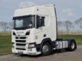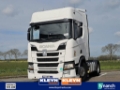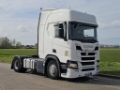 Number of axles: 2, Configuration: 4x2, Own weight: 8414 kg, Gross vehicle weight: 18000 kg, Total fuel capacity: 1200 litre, 2nd fueltank, Fifth wheel height: 116 cm, fifth-wheel: Fixed, Diff. locks: 1, Aluminium rims, Suspension type: air suspension, Cabin type: Highline, Cruise control, Tacho, Digital tachograph, Airconditioning, Parking Airco, Parking heater, Electric windows, Electric mirrors, Radio/cassette, Color: white, Heated mirrors, Lighting type: Halogen lamps, Laneassist, Climatecontrol, Seat heating, Bluetooth, Blind spot sensor, Engine capacity: 302 Kw (405 Hp), Fuel type: diesel, Euro: 6, Gearbox kind: Opti-cruise, Gearbox make: Scania, Number of Gears: 12, Add. break system, Retarder make: Scania, Power steering, ABS, ASR, Starter battery, Central locking, Seats configuration: 1+1, Seat cover: cloth, Chair adjustment: Manually