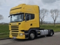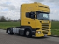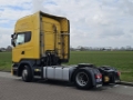 Number of axles: 2, Configuration: 4x2, Own weight: 8456 kg, Gross vehicle weight: 19000 kg, Total fuel capacity: 1200 litre, 2nd fueltank, Fifth wheel height: 104 cm, fifth-wheel: Fixed, Diff. locks: 1, Central lubrication, Suspension type: air suspension, Cabin type: Topline, Cruise control, Tacho, Digital tachograph, Airconditioning, Parking Airco, Parking heater, Electric windows, Electric mirrors, Radio/cassette, GPS navigation, Color: Yellow, Heated mirrors, Lighting type: Halogen lamps, Laneassist, Climatecontrol, Seat heating, Bluetooth, Engine capacity: 302 Kw (405 Hp), Fuel type: diesel, Euro: 6, Gearbox kind: Opti-cruise, Gearbox make: Scania, Number of Gears: 12, Add. break system, Retarder make: Scania, Power steering, ABS, ASR, Starter battery, Central locking, Seats configuration: 1+1, Seat cover: cloth, Chair adjustment: Manually