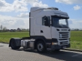 Number of axles: 2, Configuration: 4x2, Own weight: 8001 kg, Gross vehicle weight: 20500 kg, Total fuel capacity: 700 litre, 2nd fueltank, Fifth wheel height: 117 cm, fifth-wheel: Fixed, Diff. locks: 1, Cabin type: Sleeping cabin, Cruise control, Tacho, Digital tachograph, Airconditioning, Parking Airco, Parking heater, Radio/cassette, Color: white, Lighting type: Halogen lamps, Engine capacity: 331 Kw (444 Hp), Fuel type: diesel, Euro: 6, Gearbox kind: Opti-cruise, Gearbox make: Scania, Number of Gears: 12, Add. break system, Retarder make: Scania, Power steering, ABS, ASR, Starter battery, Seats configuration: 1+1, Seat cover: cloth, Chair adjustment: Manually, Retarder 2x TANK 4X2 Export!