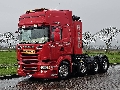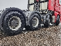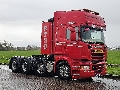Number of axles: 3, Configuration: 8x4, Total fuel capacity: 800 litre, 2nd fueltank, Fifth wheel height: 128 cm, fifth-wheel: Slide, Diff. locks: 2, Cabin type: Topline, Cruise control, Tacho, Digital tachograph, Airconditioning, Parking Airco, Parking heater, Electric windows, Electric mirrors, Color: Red, Heated mirrors, Lighting type: Halogen lamps, Climatecontrol, Flashing lights, Fuel type: diesel, Gearbox kind: Opti-cruise, Gearbox make: Scania, Number of Gears: 12, Clutch Pedal, Add. break system, Retarder make: Scania, Power steering, ABS, ASR, Hydraulic installation, PTO, PTO type: 1, Starter battery, Pump, Central locking, Seats configuration: 1+1, Seat cover: cloth, Chair adjustment: Manually