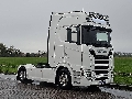 Number of axles: 2, Configuration: 4x2, Own weight: 9066 kg, Gross vehicle weight: 20500 kg, Total fuel capacity: 1315 litre, 2nd fueltank, Fifth wheel height: 123 cm, fifth-wheel: Fixed, Diff. locks: 1, Aluminium rims, Suspension type: full air suspension, Cabin type: Highline, Cruise control, Tacho, Digital tachograph, Airconditioning, Parking Airco, Parking heater, Electric windows, Electric mirrors, Radio/cassette, Carplay, GPS navigation, Color: white, Heated mirrors, Lighting type: Led lamps, Laneassist, Climatecontrol, Seat heating, Bluetooth, Engine capacity: 368 Kw (493 Hp), Fuel type: diesel, Euro: 6, Gearbox kind: Opti-cruise, Gearbox make: Scania, Number of Gears: 12, Add. break system, Retarder make: Scania, Power steering, ABS, ASR, Starter battery, Central locking, Seats configuration: 1+1, Seat cover: leather, Chair adjustment: Manually, HL,NB,Standklima,durabright,leather