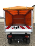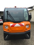 + Serienausstattung: Die 2-Mann Fahrerkabine im PKW-Design besitzt ein großes Kabinenvolumen. Ergonomische Sitzposition in Verbindung mit einer zentrisch angeordneten Pedalposition. Einfaches Lenken durch serienmäßige elektrische Lenkung. Das Fahrzeug verfügt über eine Not-Aus-Einrichtung, Ladestecker 4-polig, LCD Farbdisplay zentral angeordnet mit Sicherheitsanzeige für Batterie- und Motorfehler, Rückfahrt- und Nebelschlussleuchte, Scheibenwaschanlage mit 3-stufigen Scheibenwischern, automatische Enteisungsfunktion, komfortable Sitze mit hoher Rückenlehne und Kopfstütze, Sicherheitskontaktschalter, LED-Tagfahrlicht.