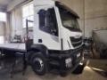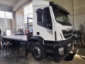 DESCRIZIONE – Autocarro in ottime condizioni generali, in allestimento con pianale con rampe di carico nuovo metri 7,60, 3 assi, 6x2*4, cambio automatico, Euro 6, sospensioni pneumatiche posteriori, terzo asse sterzante, clima, retarder