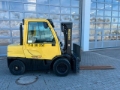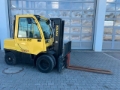 Hyster H4.0 FT6 diesel forklift, year of manufacture: 2013, hours: only 1.152h!, previous owner: german armed forces, rated load capacity: 4.000kg, lift height: 4.415mm, triplex mast, hydr. fork positioner, hydr. sideshift, diesel engine [55kW/75hp], scale: Drexel DI 47 with printer, weight: 7.490 kg, ready for immediate use!