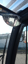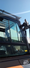 Stahlkabine schwingend gelagert, akustisches Rückfahrsignal, Minihebel, Fahrtrichtungsumschalter in der Armlehne, Sonnenrollo, blaues Warnlicht nach hinten gerichtet, Verriegelung der 4. Hydraulikfunktion, I-Site, inkl. Schocksensor, Pin-Code, Sonderausstattung: Multifunktionsdisplay