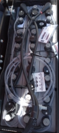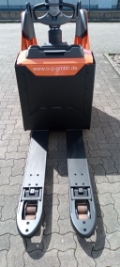 Plattform manuell hochklappbar, feste Seitenschutzwände mit schmalem Deichselgriff, kurzer Deichselarm, Servolenkung, 12,5 km/h Version, Gabelrollen Tandem, Stützrad Einfach- Premium, Antriebsrad - Premium, PIN-Code